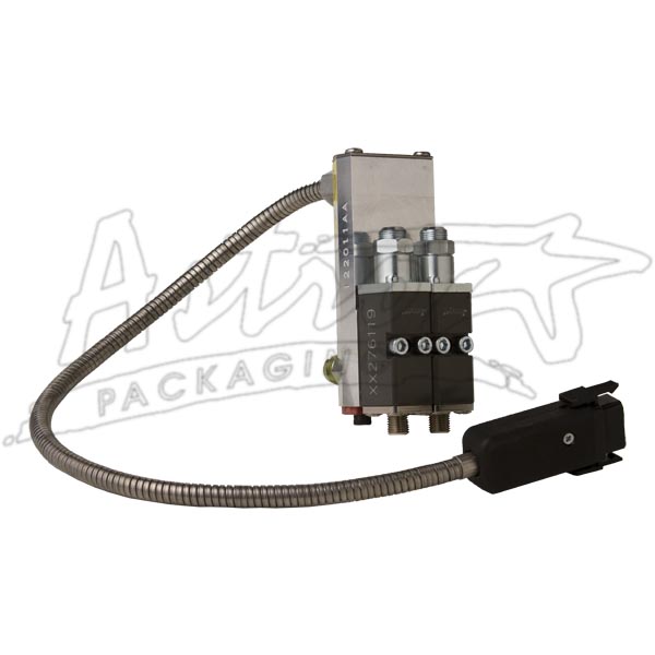 Astro Packaging manufactures a direct replacement, drop-in compatible hot melt gun, to replace Nordson® H202, CBST or SLBS glue gun. This two module low profile glue gun has .88" centers from nozzle tip to nozzle tip. The H202-T low profile hot melt glue gun offers superior cut-off performance and excellent service life, providing reliable performance on demanding production lines.